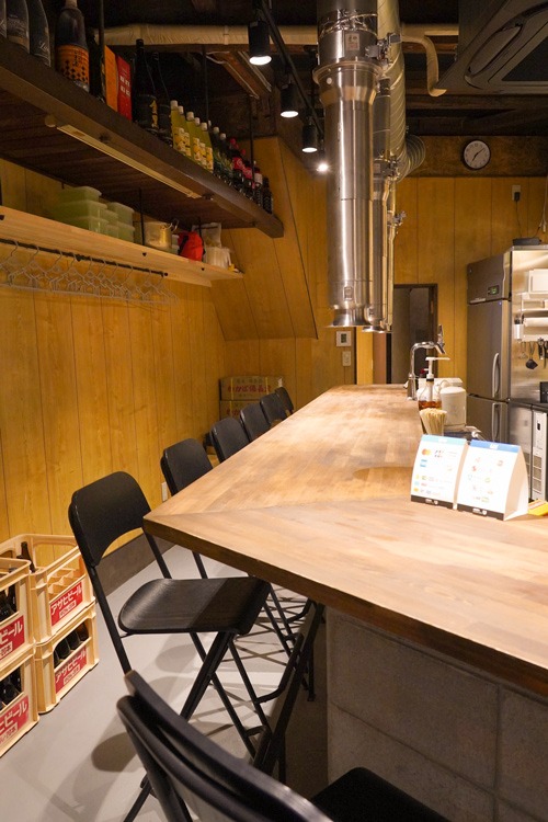 おしゃれな店内と間接照明で照らされた空間、カウンター席は、バーそのもの。